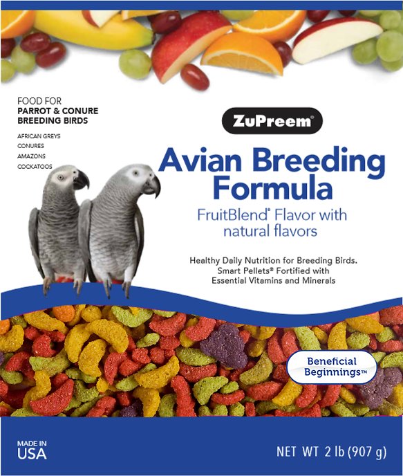 Balanced nutrition for health and reproduction in breeding birds. Proper balance of nutrients helps keep breeding stock healthy and productive. Less waste and labor than feeding fruits, vegetables and seed.