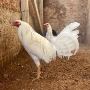 Buy White Kelso GameFowl have some common characteristics. These characteristics are yellow feathers, white or yellow legs, square and round heads, and turkey crests. These Cocks are there “to the death” fighting cocks. You need to own one of these in your fighting team or crew, you wouldn’t regret it.